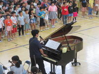 全校合唱の後には、管弦楽部の演奏をみんなで聴きました。曲は「サンドペーパーバレエ」です。紙やすり(サンドペーパー)の擦れ合う音を上手に使った楽しい曲でした。第2回歌おう集会は11月に行います。【学校経営方針との関わり】「5つのかぎ」歌いっぱいのかぎ