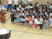 【参考】:体育館内に児童約150名、保護者約300名、教職員約50名、来賓1名、合計約500名