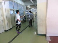 6月7日(水)に不審者対応訓練を行いました。講師は市川警察署の皆さまです。刃物を持った男がB棟廊下に侵入したという想定で訓練が開始されました。第一発見者の職員は不審者侵入を知らせる笛を鳴らしました。通報を受けた職員室では教職員と子供たちに避難行動を指示する校内放送と警察への模擬通報を行いました。放送を聞いて子供たちは、担任の指示により教室内で避難行動をとりました。廊下では校内放送を聞いて駆けつけた職員が不審者の確保に臨みました。訓練後、職員が市川警察署の方々から安全確保の取り組みや、不審者に対峙する際の注意点等、細かいアドバイスをいただきました。【学校経営方針との関わり】健やかな体「安全教育」防災教育 避難訓練の充実