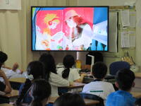 6月21日(水)の朝学習時には、先生シャッフルの読み聞かせを行いました。どのクラスにも担任ではない先生がやって来て、絵本の読み聞かせを行いました。クラスによって大型提示装置に絵本を映したり、紙芝居形式で先生の周囲に集まったりしながら、絵本に親しむ子供たちの姿が見られました。6月28日には5・6年生の図書委員が、1~4年生に読み聞かせを行います。