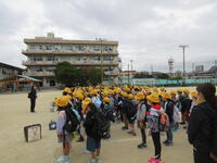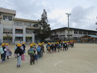 業間休み、校庭では多くの児童が鬼ごっこやドッチボールを楽しんでいました。地震発生を想定した放送が流れると、素早く校庭中央に走って集まり、しゃがんで近くにいた職員の指示を聞くことができました。また、教室にいた1年生は放送を聞いて、自分から机の下にもぐる児童や次の放送に備えて静かに待つように声掛けを受ける児童もいました。地震の揺れがおさまった放送を聞き教室に移動した児童たちには、担任から第一次避難の様子について事後指導を行い、訓練が終了しました。今年度の避難訓練は3月が最終となります。【学校経営方針との関わり:健やかな体④「安全教育」 防災教育・避難訓練の充実】