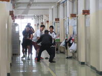 市川警察署から講師をお招きして不審者対応訓練を行いました。B棟から不審者が侵入した想定で、子供たちの避難行動や教職員の緊急対応を確認しました。子供たちが教室内に避難した状態で実施した刺股の訓練は、講師の熱心な指導もあり、緊迫感のある訓練となりました。【学校経営方針との関わり】「安全教育の推進」避難訓練の充実