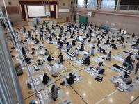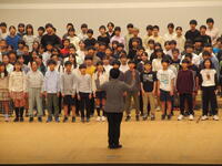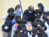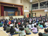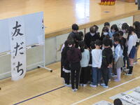 2年生が体育館で学年集会を行いました。前半には前期のまとめ、後期のめあて、校内音楽会で合唱する曲の発表がありました。後半は学年の先生に関する〇✕クイズで盛り上がりました。子供たちはすばやく話に集中したり、周囲に気を配ったりしながら集会に参加することができていました。
