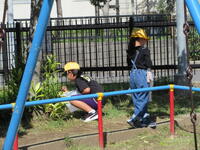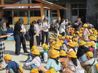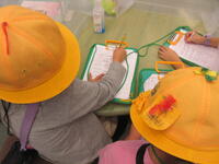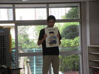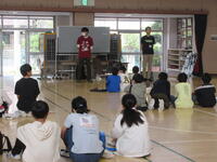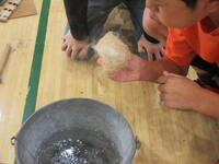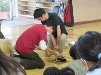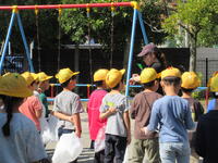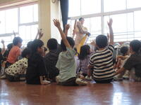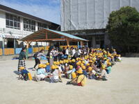 1年生が生活科の学習でしゃぼん玉作りの体験学習を行いました。めあては「大きなしゃぼん玉を作るにはどうしたらよいか」でした。子供たちはしゃぼん液の付け方、輪の形、動かすスピード等を工夫しながら、しゃぼん玉作りに熱中していました。