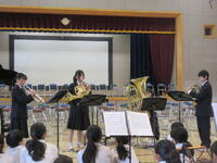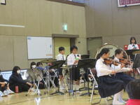 ⑤給食委員会「お昼の放送」 毎日、給食委員会の児童が、栄養士が作成した原稿をもとに今日の給食にまつわるお話をしています。