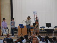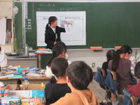 ⑥その他 毎日検食の給食を栄養士が校長室に運んできますが、その際必ず栄養士はアレルギー対応の児童の今日の対応を一人一人声に出して確認しています。声に出すことで、栄養士自身も再確認しています。また、明日、校外学習で市内の梨農園の見学に3年生が行きますが、それに合わせて前日に「市川の梨」を出すなど、行事に合わせた献立の工夫なども行っています。
