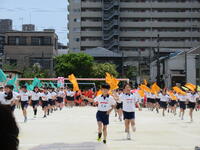 各学年の演技は児童と教職員が創りあげた、かわいらしさや力強さを感じる内容でした。開会式の写真と共に紹介いたします。【学校経営方針との関わり】:「豊かな心」学級経営の充実、たくましい心の育成、「健やかな体」体力向上、「5つのかぎ」スポーツいっぱいのかぎ