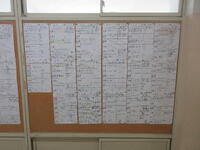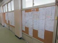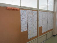 【各グループの考えた献立表が家庭科室前に掲示されています】