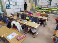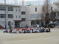 本日、業間休みの時間に「避難訓練」を行いました。本日の避難訓練については、子ども達には伝えていません。抜き打ち訓練の目的は、①予告なく地震発生の放送を聞いて第1次避難行動ができること ②休み時間に地震発生時の第1次避難方法を確認すること③いろいろな場所での地震発生時の身の守り方を確認することなどです。私は校庭の隅で全体の動きを確認していましたが、放送が始まると全員校庭の真ん中にすばやく集まり、静かに待機していました。教職員は笛を鳴らし、子ども達に避難をうながしながら、安全確認を行っていました。