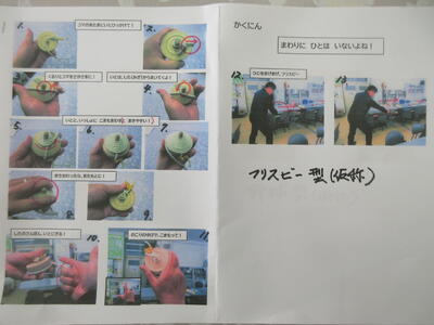 子ども達は慣れてくればどんどん自分で回せるのですが、始めのころは、「糸をどこからどっちにどうやってまけばいいのか。」「コマをどう持てばいいのか。」「糸のどこを持てばいいのか」「どう投げればいいのか。」など、わかりませんよね。この時も初めはクラスの半分近くが回せませんでしたが、「手作り資料(校長作)」と「リズム歌」風にコツを伝えながら、確認しながら教え、何回か練習すると、回せる子ども達がどんどん増えていきました。回せなくて不安げだった顔も、回せるようになってくるととびっきりの笑顔に変わっていました。コマ回しの短い時間でしたが「できなかったことが、諦めずに挑戦してできるようになることで、自信になり、やる気が出る姿」を間近で見られてとても嬉しかったです。