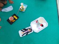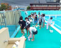 1年生は生活科の授業で、自分の作った船をプールに浮かべ、みんなで交流をしながら活動を行いました。子ども達は水着に着替え、濡れるのを気にせず、プールに入りながら自分の自慢の船を浮かべたり、お友達の船と一緒に浮かばせたりと楽しい時間を過ごしていました。残念ながら、船を浮かべている画像は取れませんでしたが、子ども達に話を聞くと、「楽しかった。」「ちゃんと浮かんだよ」「前に進んだよ!」「浮かんだけど途中で沈んじゃった。」など満足気に話をしてくれ、活動しながらいろいろな発見やお友達と交流しているのが感じられました。
