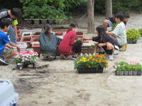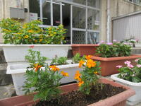 の栽培委員会では、委員の子供たちと職員でプランターに花を植えました。