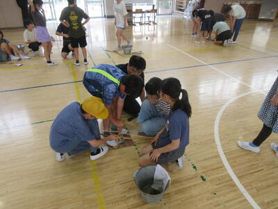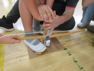 本日、講師の方をお招きして「土器ッと学ぼう」と称して、社会科の出前授業をしていただきました。内容は、①火起こし体験 ②勾玉(まがたま)作り ③しおり作り ④縄文土器観察 の4つの体験を行いました。縄文土器の説明を受け、目の前で見て触れることもでき、子ども達は興味津々で授業を受けていました。また、土器のかけらを使い模様を紙に写ししおり作りや石を研いで勾玉作りに挑戦したりと、興味を持てる活動も多く、楽しみながら学ぶことができました。ただ、子ども達が一番苦労していたのはやはり「火起こし」で、4人一組になり、役割分担をして挑戦しましたがなかなか火が点かず、汗だくだくでみんな挑戦していました。いつもいつもできることではありませんが、教科書で学んだ内容を実際に体験することで、また違った学びを得ることができたのではないかと思います。