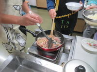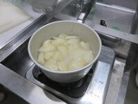 6年生が家庭科の調理実習でジャーマンポテトを作りました。事前学習で確認していた手順や留意点を確認した子供たちは、早速調理に取り掛かりました。包丁やピーラーを使いジャガイモの皮をむく作業では、思い通りにむけずに苦戦する子も多くいました。調理中は、「もっとうすく切って」、「大きさそろえて」、「ざるは流しに置かないで」等々、学んだことを生かして自分たちで声を掛け合いながらジャーマンポテトを完成させることができました。