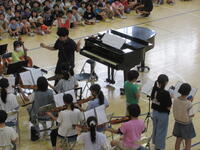全校合唱の後には、管弦楽部の演奏をみんなで聴きました。曲は「サンドペーパーバレエ」です。紙やすり(サンドペーパー)の擦れ合う音を上手に使った楽しい曲でした。第2回歌おう集会は11月に行います。【学校経営方針との関わり】「5つのかぎ」歌いっぱいのかぎ