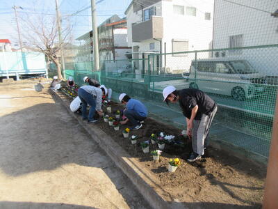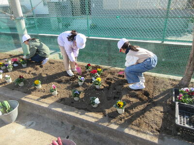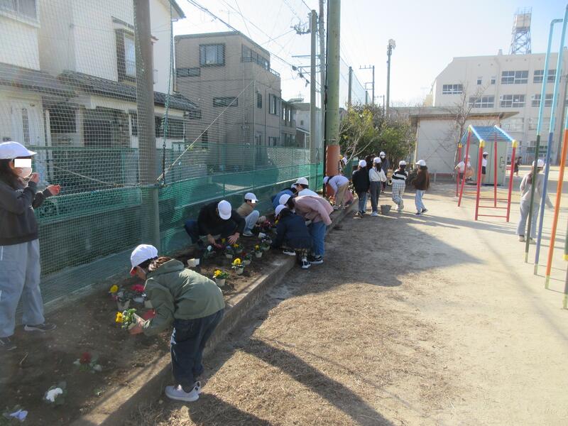 昨日、休みに時間に「子ども達」と一緒に整備してきた花壇に花を植えることができました。子ども達には「いつ植えるの?」「どんな花を植えるの?」といつも聞かれていたので、「冬に強い花を調べてきて」というと、調べて教えてくれる子ども達もいました。昨日は、やっと植えることができたので、私も嬉しいです。