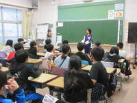 10月30日(水)・31日(木)の二日間、市内中学校の生徒が職場体験学習に来ています。初日の朝には6年生の教室を訪問し、中学校生活や授業について話をしてくれました。半年後には中学生になる6年生は、興味津々で話を聞いていました。教室では先生の仕事を体験し、休み時間には校庭に出て子供たちを見守っていました。【学校経営方針との関わり】地域と連携した学びの推進