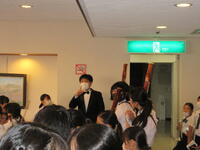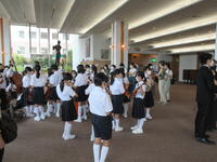 本番の演奏は、タキシードに身を包んだ佐々木教諭の指揮棒に、全員の神経が集中して華やかに始まりました。曲途中にある、クラリネット、オーボエ、チェロ、バイオリンのソロパートでは、練習の成果を発揮して美しい音色で楽器を響かせることができました。曲後半のクライマックス部分では、全員が音楽に集中し演奏を盛り上げて、曲の魅力を十分に表現しながら演奏を終えることができました。