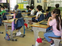 授業は「プレゼント」というDVD教材を観ながらすすんでいきました。友達のお誕生会に招かれた主人公が、用意したプレゼントをきっかけに、クラス内でいじめを受けてしまう話です。子供たちは食い入るように教材を観ていました。