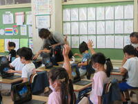 話には「いじめられる子」「いじめる子」「いじめを見ている子」が登場しました。観終わった後、講師の先生といっしょに、それぞれ立場の違う子供たちの「気持ち」をみんなで考えました。立場によって「気持ち」が全く異なり、お互いが「気持ち」を理解し合っていない状況となっていたことに子供たちは気づくことができました。