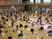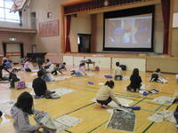 1月17日(火)に校内書初め会を行いました。冬の引き締まった空気の中、1・2校時には6年生、3・4校時には4年生が体育館に集まり、1月25日~31日に開催される校内書初め展に展示する作品を仕上げることができました。校内書初め会は、昔からの習わしに従って書初めを行い、新年の気風を高めると共に、文字の練習を奨励する機会とすること、をめあてとしています。