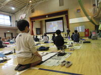 1月18日(水)の業間休みに、休み時間避難訓練を行いました。災害はいつやってくるかわかりません。今回の訓練は17日(火)~20日(金)のどこかで避難訓練があることだけを全校児童に伝え、第一次避難の仕方について、担任から学級指導を行って実施しました。指導した第一次避難とは次の通りです。①周囲を確認し、上から物が落ちてこない、横から物が倒れてこない場所を探して避難する。②室内にいる場合はその場で机の下にもぐる。③廊下にいる場合は近くの教室に入り避難する。④校庭や外にいる場合は校庭中央に移動ししゃがむ。⑤体育館にいる場合は体育館中央に移動ししゃがむ。以上です。