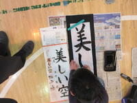 4年生は「美しい空」に取り組みました。2学期末の練習会で堀川志教先生にご指導を受けた動画を観て、ポイントを思い出しながら丁寧に書きすすめました。書初め用の太い筆を使って、文字のバランスを整えながら書くことに苦労している様子も見られましたが、集中力を維持して作品を完成させていました。