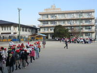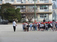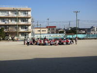 業間休み、校庭では多くの児童が鬼ごっこやドッチボールを楽しんでいました。地震発生を想定した放送が流れると、素早く校庭中央に走って集まり、しゃがんで近くにいた職員の指示を聞くことができました。また、教室にいた1年生は放送を聞いて、自分から机の下にもぐる児童や次の放送に備えて静かに待つように声掛けを受ける児童もいました。地震の揺れがおさまった放送を聞き教室に移動した児童たちには、担任から第一次避難の様子について事後指導を行い、訓練が終了しました。今年度の避難訓練は3月が最終となります。【学校経営方針との関わり:健やかな体④「安全教育」 防災教育・避難訓練の充実】