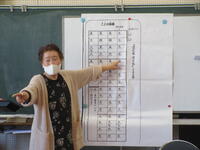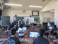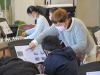 1月30日(月)に5年生で「お箏教室」を行いました。4年生の音楽で「箏」を学習して以来、箏の体験学習は2回目となります。今回は講師として尼崎歌涼先生をはじめとする3名の皆様をお招きしました。はじめに講師の皆様の演奏で「春の海」を聴いた後、早速「さくらさくら」の演奏に挑戦しました。箏の楽譜は普段見慣れた五線譜やト音記号で書かれてはいません。弾く弦の番号が順番に縦書きされています。3~4人で一面の箏を順番に使いながらの練習でしたが、子供たちは「さくらさくら」の旋律に合わせて、弾く弦の番号を歌いながら練習し、45分間で「さくらさくら」が弾けるようになりました。