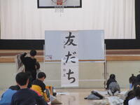 1月は各学年で書初め会を行います。1・2年生は硬筆、3・4・5・6年生は毛筆です。取り組む文字は、1年生「お正月」、2年生「元気な子」、3年生「友だち」、4年生「美しい空」、5年生「世界の国」、6年生「伝統を守る」です。