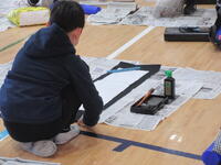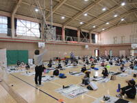 1月18日(木)の1・2校時には必要な道具を抱えて3年生が体育館に集まりました。手際よく準備を整えると、先生からの留意点を確認し、書初め会が始まりました。完成した作品は各教室前に掲示いたします。掲示日時は1月24日(水)~1月31日(水)、15:00~16:00です。お一人でのご参観をお願いいたします。