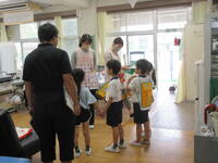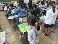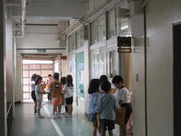 2年生生活科で「がっこうたんけん」の授業を行いました。学校内の「場所・人・役割」について、2年生が1年生に伝えながら校内を巡る交流学習です。1年生教室前にやって来た2年生は教室に入り、ペアーの1年生と一緒に、先生からの注意点を確認して「がっこうたんけん」に出発しました。保健室では2年生が「ここはぐあいがわるくなったときにくるんだよ」と1年生に教えていました。気が付いたことは校舎マップにメモを取りながら進みました。校長室にもたくさんの子供たちがやって来ました。