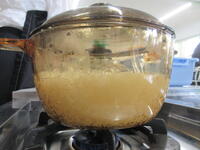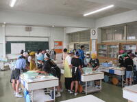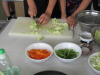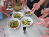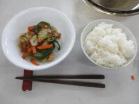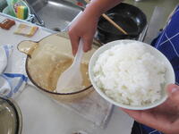 6年生が家庭科の授業でご飯と野菜炒めを作りました。お米を洗って鍋に火をかけると、野菜炒めの下準備に取り掛かりました。野菜炒めの味付けは塩コショウのみです。グループで協力・分担しながら調理をすすめていました。