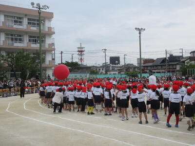 天気が心配されましたが、無事運動会を行うことができました。今年のスローガンは、「勝ち進め 限界突破に 挑戦だ」です。計画代表委員会が中心となって、考えてくれました。本日の運動会は、みんな一人一人「精一杯」自分の種目にそして高学年は係も含めチャレンジしていました。真剣な目、そして、学年関係なく大きな声を出して声援をおくる姿、仲間同士で励ましあう姿、悔しがる姿、喜ぶ姿に私は素直に感動しました。また、今年の運動会は、得点制を取り入れ、紅白対抗にしました。久しぶりの得点制の導入で心配しましたが、係り児童や担当教職員のおかげで無事行うことができました。最後の得点発表の瞬間は、みんな得点版に目が釘付けになっていました。結果が分かった時の子ども達の歓声は今も耳に残っています。運動会を終えて感じることは、運動会は大きな行事ですが、子ども達のいろいろな力を伸ばしてくれる大切な行事だと改めて感じました。