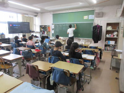 高学年では、算数教科で少人数の指導を行っています。担任のほかに少人数指導の学習支援員が配置されており、1クラスを2グループ(担任・支援員)に分け指導を行っています。2グループに分けることで、1クラスの人数が少なくなり、よりきめ細かに学習指導を行うことができています。