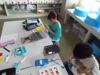 1年生は生活科の授業で、自分の作った船をプールに浮かべ、みんなで交流をしながら活動を行いました。子ども達は水着に着替え、濡れるのを気にせず、プールに入りながら自分の自慢の船を浮かべたり、お友達の船と一緒に浮かばせたりと楽しい時間を過ごしていました。残念ながら、船を浮かべている画像は取れませんでしたが、子ども達に話を聞くと、「楽しかった。」「ちゃんと浮かんだよ」「前に進んだよ!」「浮かんだけど途中で沈んじゃった。」など満足気に話をしてくれ、活動しながらいろいろな発見やお友達と交流しているのが感じられました。