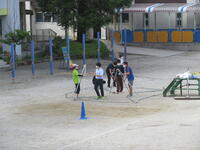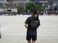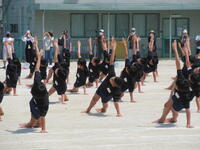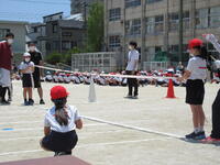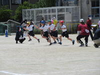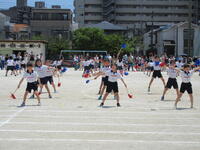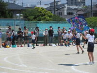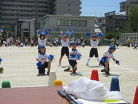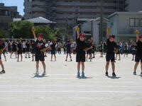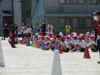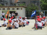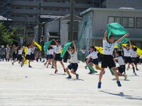 地域に思いっきり走り回ったり、ボール遊びができたりする場の少ない鬼高地区の子どもにとって、運動会は大変貴重な取り組みです。学校経営重点の一つにも「健やかな体」の育成があることから、一日1~2コマの練習を組み、計画的に体力向上を図りました。それでも練習期間が3週間ほどあったため、疲労が見られる子もおりましたが、ご家庭での支援を受けながら、元気に活動することができました。