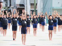 みんなで作り上げる心については、各学年が発達段階に相応しい姿を見せてくれました。そんな中、6年生は最高学年らしい6年間の積み重 ねを感じさせてくれました。自分の動きに気を配る一人一 人が集まり、集団となって表現する姿には、観る人の心を打つ力がありました。