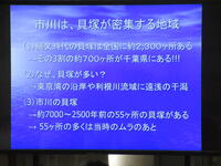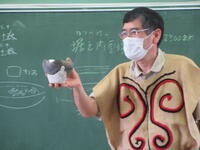 縄文時代ってどんな時代?ということでお話がすすんでいきました。今から1億3千年位前から2千3百年位前は現在より海面が低く、鬼高小の周辺は海底であったこと。市川市周辺は海岸線であったため全国的に見ても貝塚が多い地域であること。外環道道の駅周辺の遺跡からは大きな丸木舟が出土していること。等のお話が前半にありました。