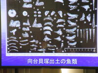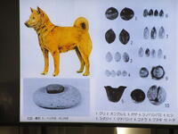 後半では縄文人が乗っていた丸木舟の作り方や、暮らしていた竪穴式住居を映像で学んだ後、使っていた石器類や土器類などの標本や模型を近くで見ることもできました。また、縄文人は何を食べていたの?ということで、主にドングリやクルミ等の植物採集、イノシシやシカ等の狩猟、大好物であった貝類等の漁労、により意外に豊かな食生活をおくっていたことがわかりました。狩猟も行っていた為多くの動物と接していましたが、縄文人にとって犬は特別な存在で大切に扱われており、亡くなった際にはお墓に埋葬していたことも教えていただきました。