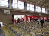 明日は卒業式 投稿日時 : 2023/03/16 鬼高小学校管理者 在校生の見送り&卒業式準備 校庭の桜の蕾も膨らみ、開花を始めています。明日の卒業式当日は、在校生が卒業生を見送ることができませんので、今朝、8時25分から8時40分の時間帯で、在校生による卒業生の見送りを行いました。在校生が廊下に並んで拍手を送る中、卒業生たちは少し恥ずかしそうにしていましたが、在校生の待つ廊下を回りました。 5年生は、1年生から4年生が下校した後、会場設営や清掃で活躍しました。もうすぐ最高学年になる5年生。先生たちと一緒に元気よく、丁寧に、椅子並べや紅白幕張り他に取り組みました。おかげで、卒業式の準備が整いました。