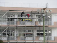 C棟では外壁が老朽化したため、夏季休業中から改修工事を行っていましたが、終業式までに改修工事が完了いたします。ベランダの軒先他で鉄筋が露出していた箇所もきれいに修復され、白と茶色のきれいな校舎となりました。工事期間中は校舎を覆うネットや足場で教室内が暗いこともありましたが、冬休みを前にして明るい日差しが教室に戻ってきました。