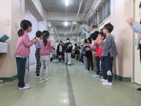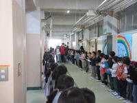 明日の卒業式を前に、在校生による卒業生の見送りを行いました。在校生が作る拍手の花道の中を卒業生は少し照れくさそうな表情をしながらすすみました。明日の卒業式には5年生が在校生代表として参加します。