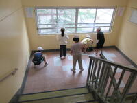 毎週木曜日は朝清掃の日です。教室内はもちろんですが廊下やトイレや階段など、みんなで協力して清掃活動に取り組んでいます。きれいになった教室で気持ちよく学習をスタートすることができます。