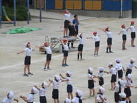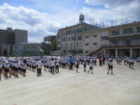 今週に入り各学年では表現運動の仕上げや個人種目(短距離走や偶然走)の練習に取り組んでいます。練習の間には熱中症対策として木陰で水分補給を行っています。