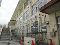 毎日暑い日が続いていますが、学校では改修工事がすすんでいます。今日は老朽化していた音楽室の防音扉とA棟外壁の改修工事がすすみました。