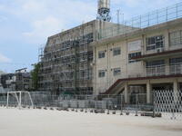 A棟改修工事で必要となる資材置き場が設置されました。学童保育、放課後こども教室、施設開放等、校庭をご利用される場合はご注意願います。