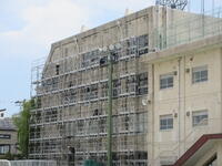 第2理科室にエアコンが設置されました。残暑厳しい9月でも快適な環境で実験に取り組めそうです。A棟ではいよいよ外壁工事の足場設置が始まりました。