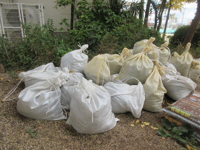 先週、校庭の一角に、土嚢(どのう)が数多く置かれていました。これは、「おやじの会」の皆さんが、土曜日に貴重な時間を使って、側溝清掃をしてくださった時にでた側溝の土です。全部で、30袋くらいありました。30袋となればかなりの量と重さになります。また側溝はなかなかスコップが入りにくく、中の土を出すのもかなりの重労働です。学校の側溝は、いろいろなところにあり、すべてを教職員で清掃するのは、非常に難しい部分があるので、こうした「おやじの会」の方のご協力いただけることは、非常にありがたいことです。本当にありがとうございます。