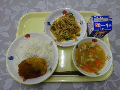 一覧へ 今日の給食 日時 2025年05月07日(水) 公開対象 パブリック 詳細 今日の献立:ごはん、牛乳、さつま芋コロッケ、ごまず和え、みそ汁 今日は、千葉県産のさつま芋を使って、さつま芋コロッケを作りました。さつま芋には、体の中でおなかの調子をよくしたり、体の中のよぶんなコレステロールを体の外に出してくれたりする働きのある食物せんいが多く含まれています。また、ウイルスに対する抵抗力を高めて風邪予防にききめがある「ビタミンC」も含まれています。 作成者 鬼高小学校管理者 作成日時 2025-05-07 13:01:06